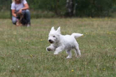 Außerdem wird der Grundstein für ein zuverlässiges Herankommen auf Ruf bereits im Welpenalter gelegt und wir können durch erste spielerische Übungen bereits auf eine korrekte Rangfolge einwirken.
